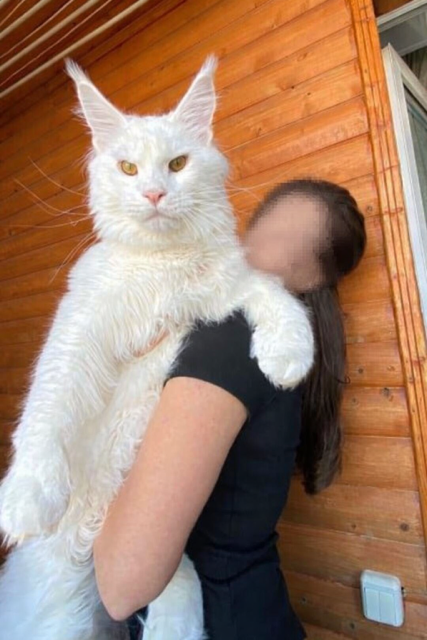 Optische illusie: kat dicht bij de lens, dus de kat lijkt groter